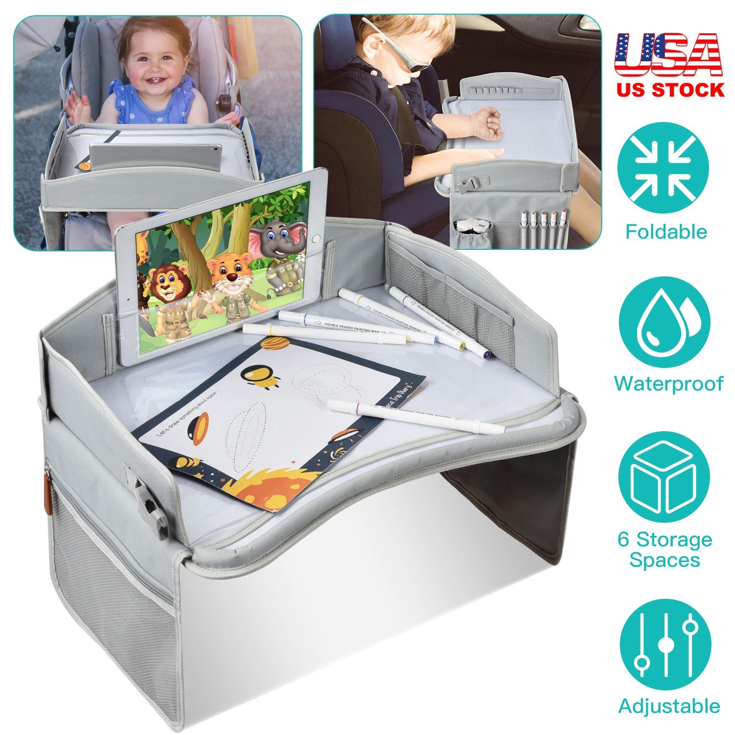 Home > Kids Travel Tray Toddler Car Seat Lap Tray Kids Road Trip Table Tray for Car Truck SUV Airplane Stroller Picnic Restaurant Camping Eating Drawing Tabl